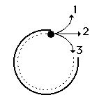 1. A group of physics teachers is taking some time off for a little putt-putt golf. The 15th hole at the Hole-In-One Putt-Putt Golf Course has a large metal rim that putters must use to guide their ball towards the hole. Mr. S guides a golf ball around the metal rim When the ball leaves the rim, which path (1, 2, or 3) will the golf ball follow?