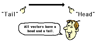 - a vector arrow (with arrowhead) is drawn in a specified direction. The vector arrow has a head and a tail.