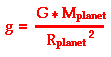 The same equation used to determine the value of g on Earth' surface can also be used to determine the acceleration of gravity on the surface of other planets. The value of g on any other planet can be calculated from the mass of the planet and the radius of the planet. The equation takes the following form: