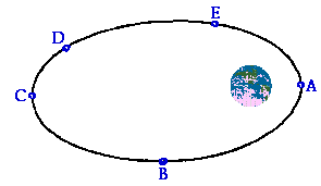 Like the case of circular motion, the total amount of mechanical energy of a satellite in elliptical motion also remains constant. Since the only force doing work upon the satellite is an internal (conservative) force, the Wext term is zero and mechanical energy is conserved. Unlike the case of circular motion, the energy of a satellite in elliptical motion will change forms. As mentioned above, the force of gravity does work upon a satellite to slow it down as it moves away from the earth and to speed it up as it moves towards the earth. So if the speed is changing, the kinetic energy will also be changing. The elliptical trajectory of a satellite is shown below.