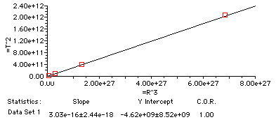 8. How does the T2/R3 ratio for Jupiter (as shown in the last column of the data table) compare to the T2/R3 ratio found in #7 (i.e., the slope of the line)?