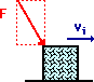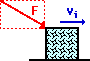 Suppose at the local ice factory, a block of ice slides out of the freezer and a mechanical arm exerts a force to accelerate it across the icy, friction free surface. Last week, the mechanical arm was malfunctioning and exerting pushes in a randomly directed fashion. The various direction of forces applied to the moving block of ice are shown below. For each case, observe the force in comparison to the direction of motion of the ice block and predict whether the force will speed up, slow down or not affect the speed of the block. Use vector components to make your predictions. Then check your answers by clicking on the button.