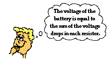 As discussed in Lesson 1, the electrochemical cell of a circuit supplies energy to the charge to move it through the cell and to establish an electric potential difference across the two ends of the external circuit. A 1.5-volt cell will establish an electric potential difference across the external circuit of 1.5 volts. This is to say that the electric potential at the positive terminal is 1.5 volts greater than at the negative terminal. As charge moves through the external circuit, it encounters a loss of 1.5 volts of electric potential. This loss in electric potential is referred to as a voltage drop. It occurs as the electrical energy of the charge is transformed to other forms of energy (thermal, light, mechanical, etc.) within the resistors or loads. If an electric circuit powered by a 1.5-volt cell is equipped with more than one resistor, then the cumulative loss of electric potential is 1.5 volts. There is a voltage drop for each resistor, but the sum of these voltage drops is 1.5 volts - the same as the voltage rating of the power supply. This concept can be expressed mathematically by the following equation: