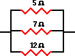 1/Req = 1/(5.0 Ω) + 1/(7.0 Ω) + 1/(12 Ω)
