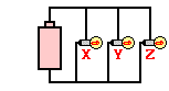3. Three identical light bulbs are connected to a D-cell as shown below. P, Q, X, Y and Z represent locations along the circuit. At which location(s), if any, will the current be ...