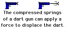 A dart gun is still another example of how mechanical energy of an object can do work on another object. When a dart gun is loaded and the springs are compressed, it possesses mechanical energy. The mechanical energy of the compressed springs gives the springs the ability to apply a force to the dart in order to cause it to be displaced. Because of the springs have mechanical energy (in the form of elastic potential energy), it is able to do work on the dart. Mechanical energy is the ability to do work.