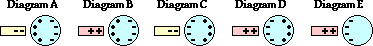5. Charged rubber rods are placed near a neutral conducting sphere, causing a redistribution of charge on the spheres. Which of the diagrams below depict the proper distribution of charge on the spheres? List all that apply.
