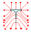 4. Consider the diagram of the thumbtack shown at the right. Suppose that the thumbtack becomes positively charged. Draw the electric field lines surrounding the thumbtack.