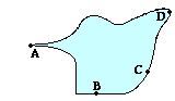 3. A diagram of an irregularly shaped charged conductor is shown at the right. Four locations along the surface are labeled - A, B, C, and D. Rank these locations in increasing order of the strength of their electric field, beginning with the smallest electric field.