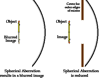 Spherical aberration is most commonly corrected by use of a mirror with a different shape. Usually, a parabolic mirror is substituted for a spherical mirror. The outer edges of a parabolic mirror have a significantly different shape than that of a spherical mirror. Parabolic mirrors create sharp, clear images that lack the blurriness which is common to those images produced by spherical mirrors.