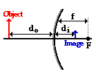 objects when placed at a given location in front of a mirror. The use of these diagrams was demonstrated earlier in Lesson 3 and in Lesson 4. Ray diagrams provide useful information about object-image relationships, yet fail to provide the information in a quantitative form. While a ray diagram may help one determine the approximate location and size of the image, it will not provide numerical information about image distance and image size. To obtain this type of numerical information, it is necessary to use the Mirror Equation and the Magnification Equation. The mirror equation expresses the quantitative relationship between the object distance (do), the image distance (di), and the focal length (f). The equation is stated as follows: