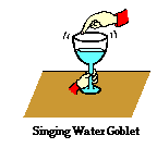 Obtain a water goblet and clean your fingers. Then gently slide your finger over the rim of the water goblet. If you are fortunate enough, you might be able to set the goblet into vibration by means of slip-stick friction. (It is not necessary to use a crystal goblet. It is often said that crystal goblets work better; but the trick is just as easily performed with clean fingers and an inexpensive goblet.) Like a violin bowstring being pulled across a violin string, the finger sticks to the glass molecules, pulling them apart at a given point until the tension becomes so great. The finger then slips off the glass and subsequently finds another microscopic surface to stick to; the finger pulls the molecules at that surface, slips and then sticks at another location. This process of stick-slip friction occurring at a high frequency is sufficient to set the molecules of the glass into vibration at its natural frequency. The result is enough to impress your dinner guests. Try it at home!!