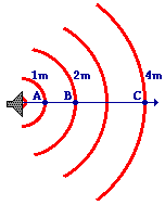 As a sound wave carries its energy through a two-dimensional or three-dimensional medium, the intensity of the sound wave decreases with increasing distance from the source. The decrease in intensity with increasing distance is explained by the fact that the wave is spreading out over a circular (2 dimensions) or spherical (3 dimensions) surface and thus the energy of the sound wave is being distributed over a greater surface area. The diagram at the right shows that the sound wave in a 2-dimensional medium is spreading out in space over a circular pattern. Since energy is conserved and the area through which this energy is transported is increasing, the intensity (being a quantity that is measured on a per area basis) must decrease.