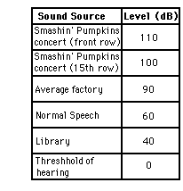 2. The table at the right represents the decibel level for several sound sources. Use the table to make comparisons of the intensities of the following sounds.
