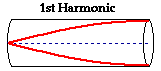 As has already been mentioned, a musical instrument has a set of natural frequencies at which it vibrates at when a disturbance is introduced into it. These natural frequencies are known as the harmonics of the instrument. Each harmonic is associated with a standing wave pattern. In Lesson 4 of Unit 10, a standing wave pattern was defined as a vibrational pattern created within a medium when the vibrational frequency of the source causes reflected waves from one end of the medium to interfere with incident waves from the source in such a manner that specific points along the medium appear to be standing still. In the case of stringed instruments (discussed earlier), standing wave patterns were drawn to depict the amount of movement of the string at various locations along its length. Such patterns show nodes - points of no displacement or movement - at the two fixed ends of the string. In the case of air columns, a closed end in a column of air is analogous to the fixed end on a vibrating string. That is, at the closed end of an air column, air is not free to undergo movement and thus is forced into assuming the nodal positions of the standing wave pattern. Air at the closed end of an air column is still. Conversely, air is free to undergo its back-and-forth longitudinal vibration at the open end of an air column. And as such, the standing wave patterns will depict vibrational antinodes at the open ends of air columns.