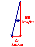 (100 km/hr)2 + (25 km/hr)2 = R2