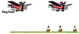 3. Suppose a rescue airplane drops a relief package while it is moving with a constant horizontal speed at an elevated height. Assuming that air resistance is negligible, where will the relief package land relative to the plane?