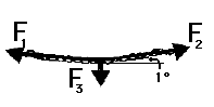 5. Suppose that a student pulls with two large forces (F1 and F2) in order to lift a 1-kg book by two cables. If the cables make a 1-degree angle with the horizontal, then what is the tension in the cable?