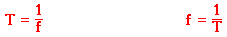 Since the symbol f is used for frequency and the symbol T is used for period, these equations are also expressed as: