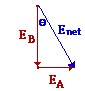 Now the two E values will be added as vectors. The sketch at the right depicts the addition. Since they are at right angles to each other, the Pythagorean theorem will be used to determine the magnitude and trigonometry will be used to determine the direction.
