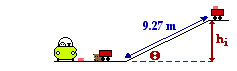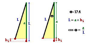 The values of theta (14.9 degrees) and L (9.27 m) can be substituted into this equation and hi is found to be 2.38 m.