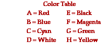 17. Demonstrate your understanding of color subtraction by completing the following color equations. Select colors from the Color Table at the right.
